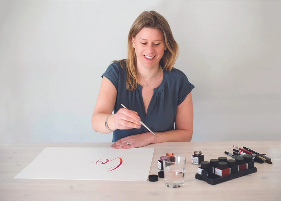 Jag heter Karin och är kalligraf och formgivare med många års erfarenhet. Efter att ha bott och jobbat i USA i 20 år flyttade jag hem till Stockholm år 2020 och här jobbar jag och håller kalligrafikurser i min studio på Ingarö.